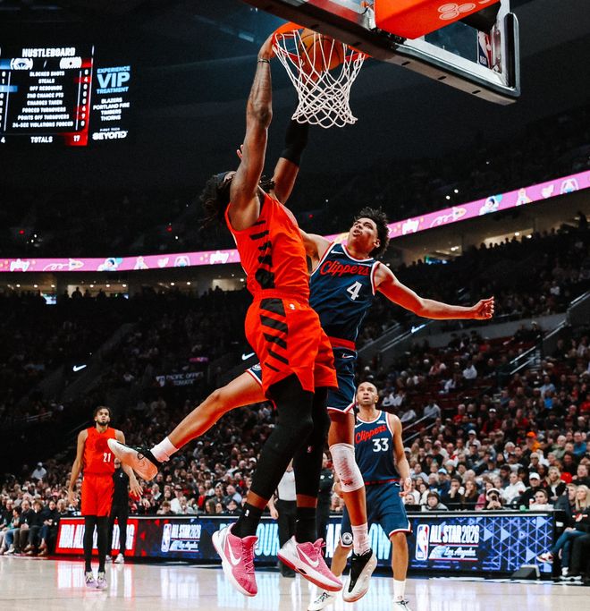次節(jié)開場呂佩爾都命中三分,快船的防守存在巨大問題,小卡后仰中投得手,阿夫迪亞空接助攻羅威暴扣,阿夫迪亞單打大洛都命中泰倫盧叫停。大洛連續(xù)三個三分球命中快船起勢直接縮小到2分打停開拓者,但暫停后科林斯兩個進攻犯規(guī)失誤幫助開拓者打出9-0泰倫盧也被打停。暫?;貋砉?+1,卡馬拉想隔扣大洛造犯規(guī)泰倫盧挑戰(zhàn)失敗,半場打完開拓者62-56領先快船。