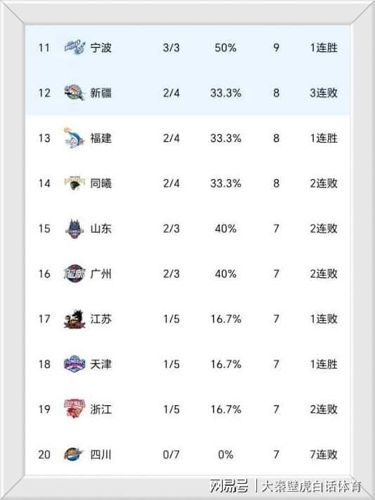 ③、前總冠軍四川男籃7連敗,成為唯一未嘗勝績(jī)的球隊(duì),依然排名墊底。