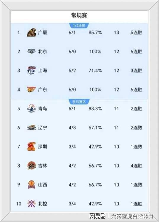 ②、本場(chǎng)遭到爆冷的遼寧男籃,雖然總戰(zhàn)績(jī)4勝3負(fù),但排名不降反升,由第8位升至第6位;