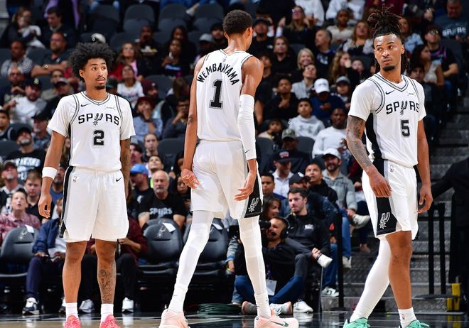 北京時(shí)間12月28日,NBA常規(guī)賽繼續(xù)進(jìn)行,西部第二的馬刺主場(chǎng)對(duì)陣爵士。此前馬刺的戰(zhàn)績(jī)?yōu)?3勝7負(fù),最近轟下8連勝,距離戰(zhàn)績(jī)聯(lián)盟第一的雷霆只差2.5個(gè)勝場(chǎng)。關(guān)鍵是他們兩周時(shí)間里,已經(jīng)三次擊敗雷霆,成為雷霆苦主克星!在最近10場(chǎng)比賽中,馬刺進(jìn)攻效率聯(lián)盟第五,防守效率聯(lián)盟第四,凈效率值聯(lián)盟第一。馬刺這套陣容很有特點(diǎn),??怂购涂ㄋ?fàn)枎ш?duì)首發(fā),文班亞馬和哈珀帶隊(duì)替補(bǔ),田忌賽馬的策略讓其他球隊(duì)匹配不上。不過賽前球隊(duì)遭遇壞消息,??怂钩霈F(xiàn)左內(nèi)收肌傷勢(shì),本場(chǎng)比賽不打。