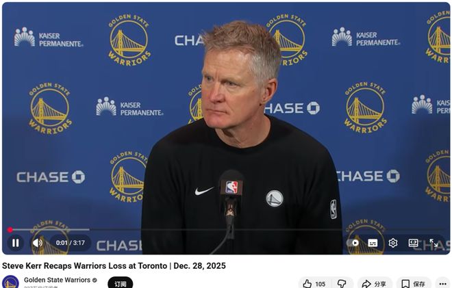 勇士3連勝終結(jié)!庫里空砍39分指出兩大短板 科爾執(zhí)迷不悟還在嘴硬