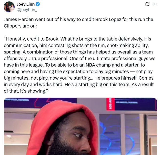 面對(duì)大洛這樣的表現(xiàn),哈登賽后也公開(kāi)稱贊道:“功勞必須給到大洛,他在防守端為球隊(duì)注入了能量,不僅是溝通與呼應(yīng),還在籃下送出封蓋,進(jìn)攻端又能拉開(kāi)空間,他的存在極大盤活了我們的進(jìn)攻?!?/p>