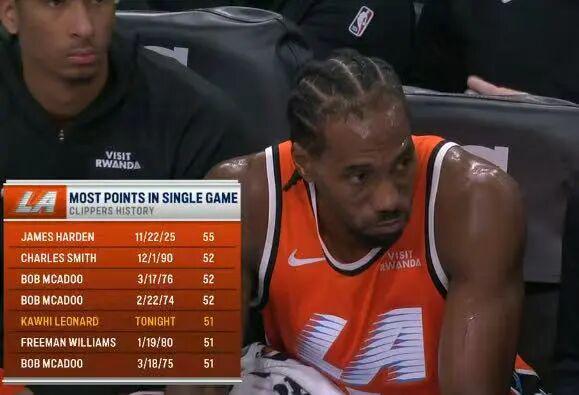 55分!倫納德超神!與哈登共享隊(duì)史得分王!