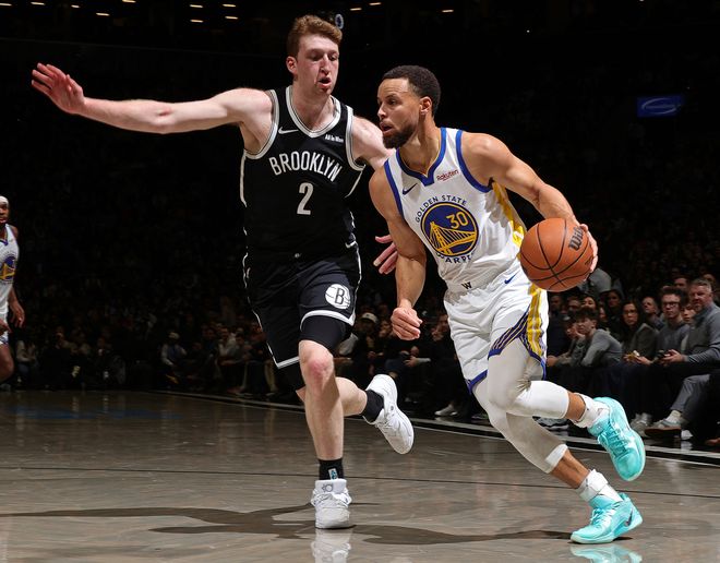 這是勇士背靠背的第二場,他們剛剛在寒冷的多倫多鏖戰(zhàn)加時(shí)賽不敵猛龍,隨后又馬不停蹄飛到紐約對(duì)陣籃網(wǎng),籃網(wǎng)就比猛龍好打一些,畢竟籃網(wǎng)是東部倒數(shù)第三。庫里對(duì)陣猛龍一戰(zhàn)30投12中拿39分4籃板3助攻加時(shí)賽3中0遭到質(zhì)疑,此役開場庫里慢熱,首節(jié)4中1+三分3中0只拿到2分1籃板3助攻,好在勇士替補(bǔ)席的努力緊咬比分。