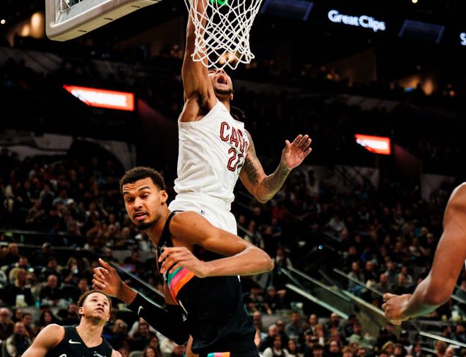 本場(chǎng)比賽有意思了,兩隊(duì)都祭出最強(qiáng)陣容,文班亞馬和上一場(chǎng)打爵士一樣,還是首發(fā),回顧下比賽,開(kāi)場(chǎng)莫布里補(bǔ)籃+阿倫扣籃,文班亞馬拋投+跟進(jìn)雙手暴扣泄憤!雙方僵持了幾分鐘,韋德下三分雨打停馬刺!中段阿倫連續(xù)強(qiáng)攻籃下,亨特續(xù)上3+1,騎士已經(jīng)拉開(kāi)10分分差。后半段尚帕尼和約翰遜帶領(lǐng)馬刺追分,文班亞馬造殺傷+騎馬射箭三分球,第一節(jié)馬刺26-25領(lǐng)先騎士。進(jìn)入第二節(jié),文班亞馬繼續(xù)大帽莫布里+突破造殺傷,米切爾和湯姆林下起三分雨,阿倫繼續(xù)籃下肆虐,??怂箘t內(nèi)突外投咬住比分。