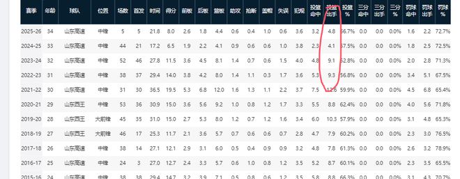 要知道,前四個賽季,王哲林場均出手最少也有9.9次,最多可達(dá)到16.8次。由此可見,他已從球隊內(nèi)線核心,逐漸變成了藍(lán)領(lǐng)中鋒。