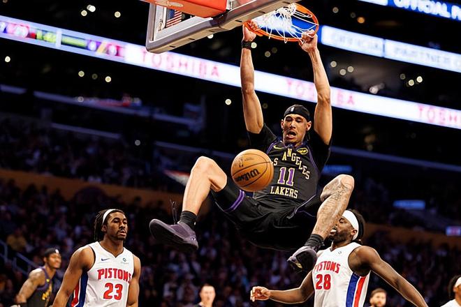 在此前的一場NBA常規(guī)賽中,底特律活塞末節(jié)發(fā)力,以128比106完勝了洛杉磯湖人。本場比賽后,結(jié)束了兩連敗的活塞的戰(zhàn)績提升到了25勝8負(fù),繼續(xù)排名東部榜首位置;而在最近5場比賽中輸?shù)袅?場的湖人的戰(zhàn)績則是已經(jīng)下滑到了20勝11負(fù),繼續(xù)排名西部第5位,但是與身后的明尼蘇達(dá)森林狼的勝場差已經(jīng)是0場了。