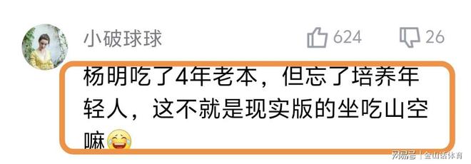 目睹遼寧隊(duì)如今的悲慘現(xiàn)狀,遼寧球迷也是在網(wǎng)絡(luò)平臺發(fā)表觀點(diǎn),矛頭直指球隊(duì)主教練楊鳴?!皸蠲鞒粤?年老本,但忘了培養(yǎng)年輕人,這不就是現(xiàn)實(shí)版的坐吃山空嘛”;“看看楊鳴創(chuàng)遼籃多少連敗紀(jì)錄”;“遼寧隊(duì)現(xiàn)在基本上每一場比賽只能拿60來分,這樣的比分拿什么贏球?”;“以前的遼寧隊(duì)打比賽是從從容容游刃有余!現(xiàn)在是匆匆忙忙連滾帶爬”;“楊鳴吃了郭士強(qiáng)四五年紅利,終于原形畢露了”,“坐吃山空”……