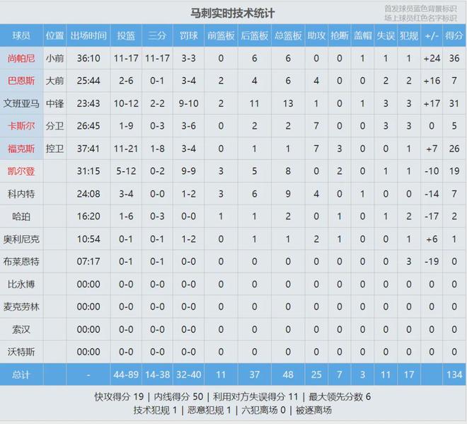 尚帕尼三分17中11,狂砍36分6板!文班亞馬31分13板、??怂?6分7助3斷、凱爾登19分8板。尼克斯4人砍下20+,最后看看數(shù)據(jù),說說心情: