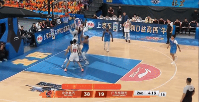 比賽第二節(jié)還剩4分07秒,場上發(fā)生意外,薩林杰前場上籃打中,北京快發(fā)底線球反擊,周琦在反擊過程中接應(yīng)杰曼長傳準備下快攻,但過程中不慎被薩姆納絆倒,周琦失去重心摔倒,不幸撞傷了徐杰。