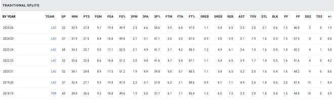 10.倫納德本賽季場均2.7個三分球也是生涯新高。