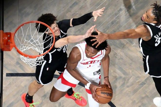 7年時間,籃網(wǎng)隊只有2年稱得上強隊,但火箭隊不管是擺爛時期,還是季后賽時期,又或者是重建期,7年間都沒有在籃網(wǎng)主場贏過球。今天算是一個絕佳的機會了,因為籃網(wǎng)隊本賽季的核心,場均能夠得到25.8分的小波特缺陣,還有鋒線上的曼恩,和新秀德明,可以說本賽季籃網(wǎng)隊內(nèi)表現(xiàn)出色的都休戰(zhàn)了。雖然火箭隊的兩大內(nèi)線亞當斯和卡佩拉也缺席比賽,但主力都是能夠出戰(zhàn)的狀態(tài)。所以這場比賽,兩隊無論是硬實力還是狀態(tài)都差了很多,所以這場比賽從一開始就沒什么懸念。比賽一開始,火箭隊的前6次出手全部命中,打出了一波12-2的進攻高潮,迫使籃網(wǎng)隊在開局僅僅2分鐘的情況下就喊出暫停。