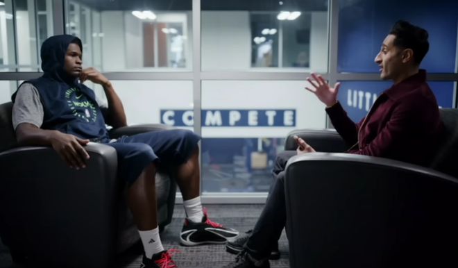 愛(ài)德華茲:是啊,我當(dāng)時(shí)還拍了好幾張照片。按理說(shuō),替補(bǔ)席上是不準(zhǔn)玩手機(jī)的,這是規(guī)定。但我當(dāng)時(shí)心想:“管他什么規(guī)定呢,去他的規(guī)定?!蔽覐陌四昙?jí)起就和安德瑪簽約了,那時(shí)候我就總穿庫(kù)里的球鞋。幾年后我參加了他的籃球訓(xùn)練營(yíng),后來(lái)又進(jìn)入NBA,還和他一起征戰(zhàn)奧運(yùn)會(huì)。看著他為人處世那么隨和親切,再看到他腳上穿著我的簽名鞋 —— 那一刻,我感覺(jué)自己又變回了那個(gè)小男孩。所以我當(dāng)時(shí)必須得拍幾張照片留念。就跟普通人見(jiàn)到明星路過(guò)一樣,趕緊掏出手機(jī)抓拍,當(dāng)時(shí)我就是那個(gè)樣子。