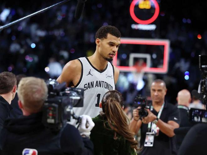 這里,不妨看下文班亞馬的賽季表現(xiàn):打了15場常規(guī)賽,場均25.1分12.3籃板3.8助攻3.4蓋帽1.0搶斷,三項命中率51.6%/36.4%/82.9%,真實命中率62.0%。