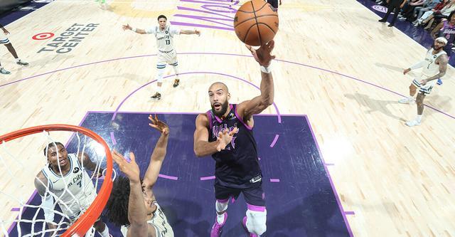 愛(ài)德華茲24分戈貝爾生涯總籃板破萬(wàn) 森林狼逆轉(zhuǎn)雄鹿