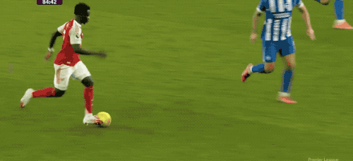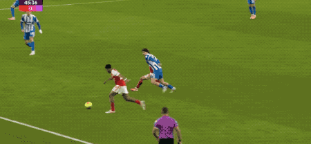 第14分鐘,布萊頓的傳球被搶斷,薩卡送出助攻,厄德高打近角得手,槍手早早取得領先。