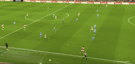 第30分鐘,因卡皮耶送出妙傳,薩卡停球不太舒服,但迅速調(diào)整后依舊強行進入禁區(qū)傳球,防守球員將球解圍。