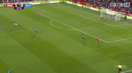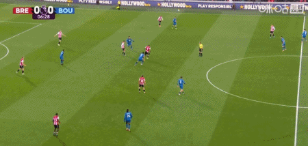 第7分鐘,蒂亞戈直塞,沙德扛開防守低射破門,布倫特福德1-0伯恩茅斯