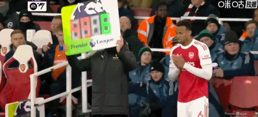 第28分鐘,傷愈回歸的加布里埃爾開(kāi)始熱身,球迷送上掌聲