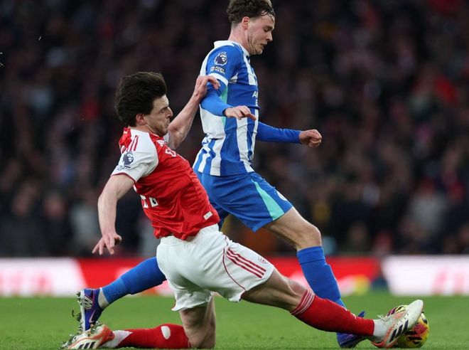 下半場易邊再戰(zhàn),布萊頓率先換人調(diào)整,明特和魏費(fèi)爾替補(bǔ)上場。第52分鐘,阿森納再次進(jìn)球。賴特開出角球,呂特頭球頂進(jìn)自家球門。這粒烏龍球讓阿森納擴(kuò)大優(yōu)勢。8分鐘后,哲凱賴什禁區(qū)右側(cè)小角度射門,被擋了出去。