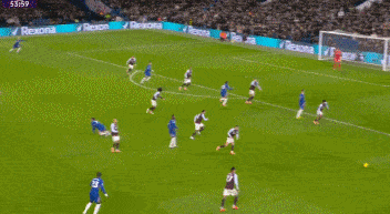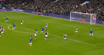 第37分鐘,詹姆斯角球開出,若昂-佩德羅將球蹭進球門,大馬丁被擠在門內(nèi)無法出擊,切爾西1-0領(lǐng)先維拉。