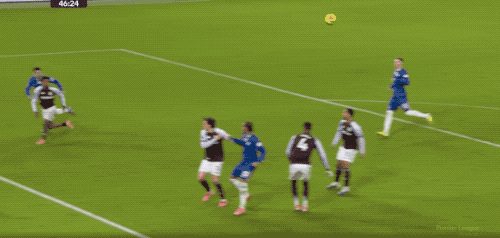 第37分鐘,里斯·詹姆斯開(kāi)出角球,佩德羅甚至沒(méi)有注意到皮球,皮球砸在他的小腿上,彈進(jìn)球門(mén)。