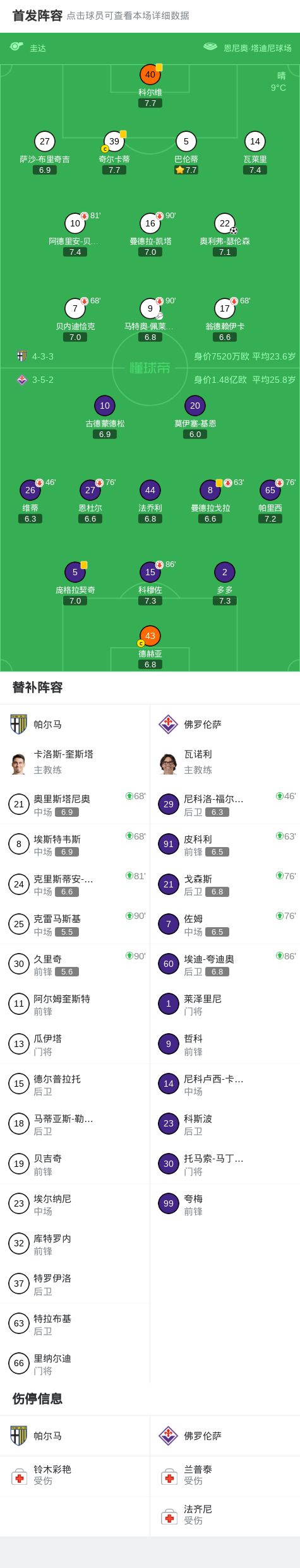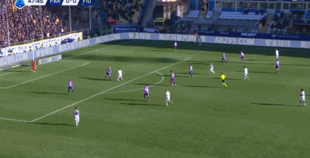 第48分鐘,佩萊格里諾助攻,瑟倫森頭球破門,帕爾馬1-0佛羅倫薩