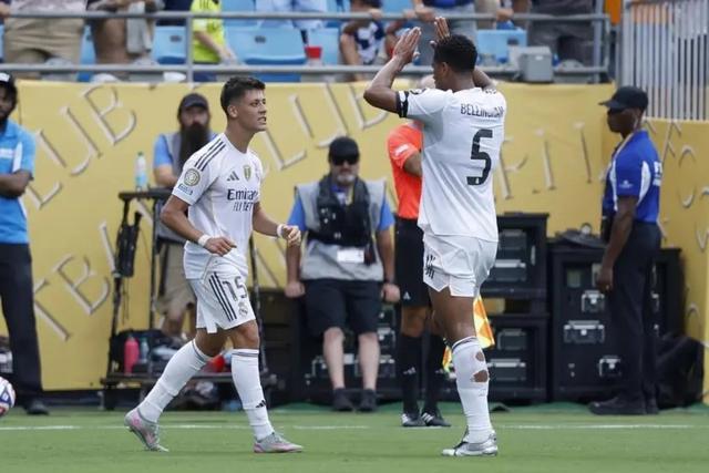 阿隆索麾下的皇馬擁有可以承擔(dān)這一角色的球員。前述的居萊爾后撤了位置,但由于位置過深,他逐漸失去了光芒,不僅丟掉了最后一傳的能力,也削弱了與姆巴佩之間的良性連接。從世俱杯開始,就可以看出教練對這位土耳其小將新角色的押注。然而,在12月的收官階段,他的重要性有所下滑,在對陣曼城的比賽中出任替補(bǔ)便證明了這一點(diǎn)。他以唯一一位參加了皇馬本賽季全部25場比賽的球員身份結(jié)束了這一年,但其出場時間僅排在隊內(nèi)第七。