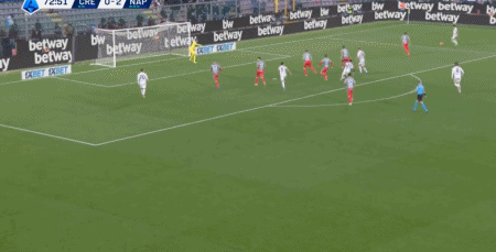 第13分鐘,霍伊倫補(bǔ)射破門(mén)先拔頭籌,那不勒斯1-0克雷莫內(nèi)塞