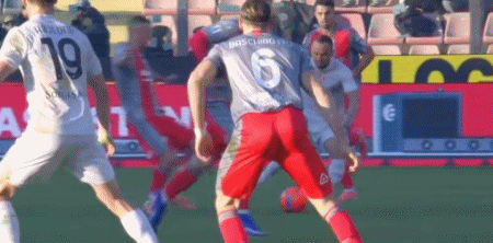 第34分鐘,瓦爾迪搶球撞倒洛博特卡,胡安-熱蘇斯對(duì)判罰不滿(mǎn)吃到黃牌