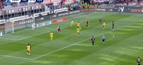 第45分鐘,拉比奧頭球擺渡,普利希奇后點推射破門,米蘭1-0領先