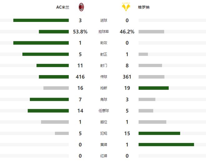 起勢的AC米蘭,在第53分鐘徹底終結了勝負的懸念,莫德里奇遠射造成維羅納門將撲救脫手,恩昆庫補射上演梅開二度,將領先的優(yōu)勢擴大到了3-0,余下的時間,AC米蘭開始掌控節(jié)奏,雖然沒有進一步擴大優(yōu)勢,但沒有給維羅納任何的機會,如愿在主場完成零封。