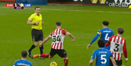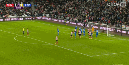 第28分鐘,扎卡斜塞,阿丁格拉兜射破門,桑德蘭1-0利茲聯(lián)
