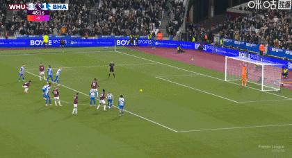 半場:西漢姆聯(lián)2-1布萊頓,帕奎塔傳射+送點,維爾貝克點球二中一