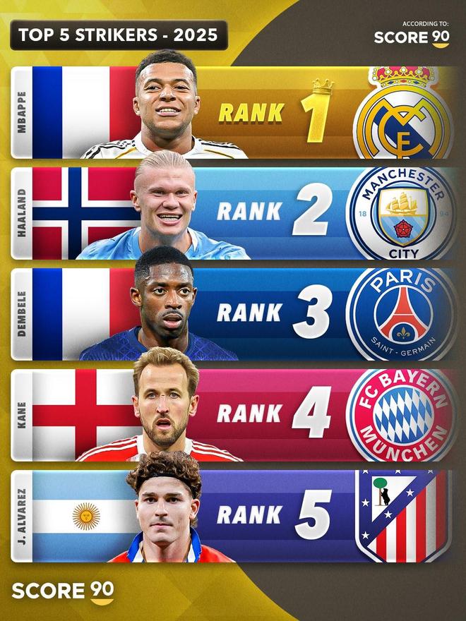 Score90評(píng)2025年五大前鋒:拉菲尼亞、亞馬爾、姆巴佩各位置居首