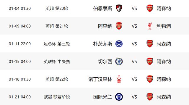 不過阿森納也不能大意,因為接下來,他們還將面臨魔鬼賽程。從本周末開始,到歐冠客場大戰(zhàn)國米,在差不多17天的時間里,阿森納要踢6場惡戰(zhàn)。雖然伯恩茅斯實力不算太強(qiáng),但是本賽季他們9個主場僅有1敗,上賽季阿森納就在客場輸給這個對手,這場比賽阿森納隨時可能再丟分。之后對陣?yán)锲?,阿森納同樣可能會遇到麻煩。打完利物浦之后,阿森納就將出戰(zhàn)足總杯,雖然樸茨茅斯是低級別聯(lián)賽的對手,但是足總杯向來是冷門的溫床,阿森納如果輪換太多主力,隨時會翻車。接下來和切爾西的聯(lián)賽杯半決賽首回合比賽,阿森納也不容有失。