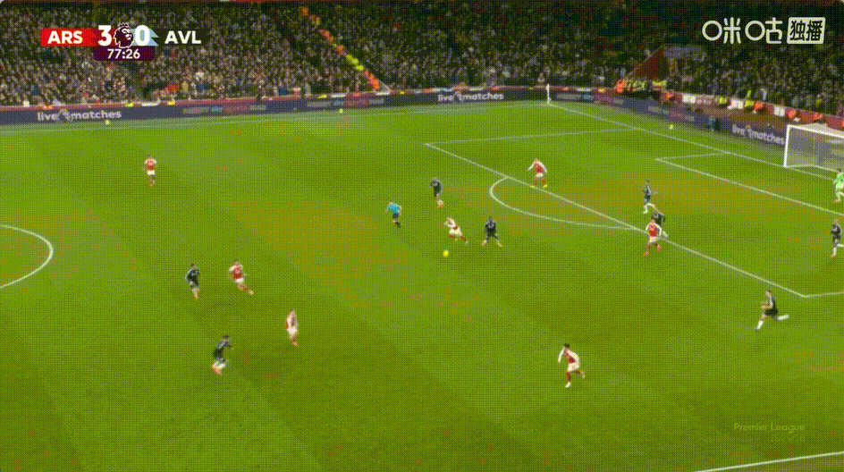 本輪,阿森納坐鎮(zhèn)酋長球場迎戰(zhàn)阿斯頓維拉。第77分鐘,熱蘇斯替補登場。特羅薩德在左路帶球推進,橫敲到中路。熱蘇斯右腳張弓搭箭,在大禁區(qū)線一帶遠射破門,攻破大馬丁把守的球門