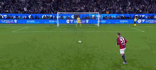 第59分鐘,國米左路快速反擊,邦尼插上突入禁區(qū),赫格姆回防似乎推了一下邦尼,邦尼摔倒在地,主裁第一時間吹罰了點球,但在VAR確認(rèn)后取消了點球。補(bǔ)時階段,國米后防失誤差點被絕殺,魯伊斯禁區(qū)左側(cè)斷球大力兜射,馬丁內(nèi)斯奮勇將球撲出。90分鐘雙方無力分出勝負(fù),比賽進(jìn)入點球大戰(zhàn)。