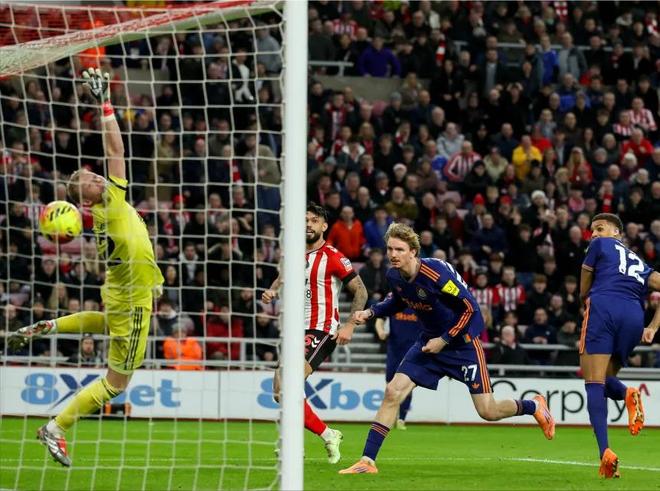 但下半場一開始就風云突變,桑德蘭獲得角球機會,高中鋒沃爾特馬德積極回防禁區(qū)。比起約克雷斯和伊薩克,小沃算是備受好評的新援中鋒了,他在禁區(qū)內(nèi)判斷對手傳中落點時的小碎步不禁讓人想起了哈蘭德,對手的這次傳中也確實來到了他的頭頂,但是他似乎完全沒有意識到自己的這次頭球目的是解圍,而不是攻門,所以正應了那句俗話,自古烏龍出世界波。