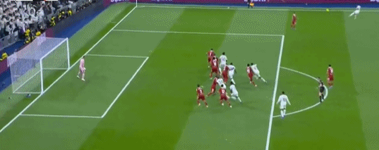 第38分鐘,馬爾康鏟倒羅德里戈,后者右路定位球傳中,貝林厄姆沖頂破門,皇馬打破僵局,1-0!