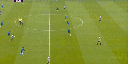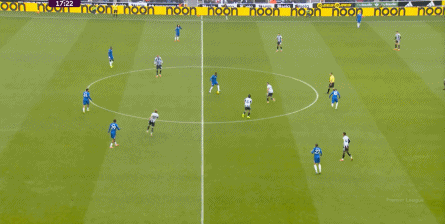 那么,對于在場上沒有明顯的身體或技術(shù)方面優(yōu)勢,也沒有某個單點或區(qū)域優(yōu)勢的切爾西來說,他們實際上只能等待紐卡斯?fàn)柕膹姸然芈洹?/p>